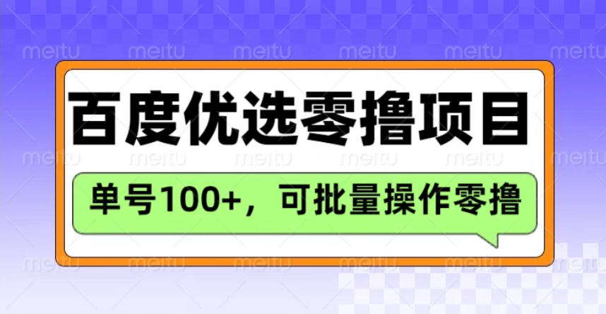 百度优选推荐官项目,单号日入100+,长期稳定,可以批量放大操作,全套教程下载: