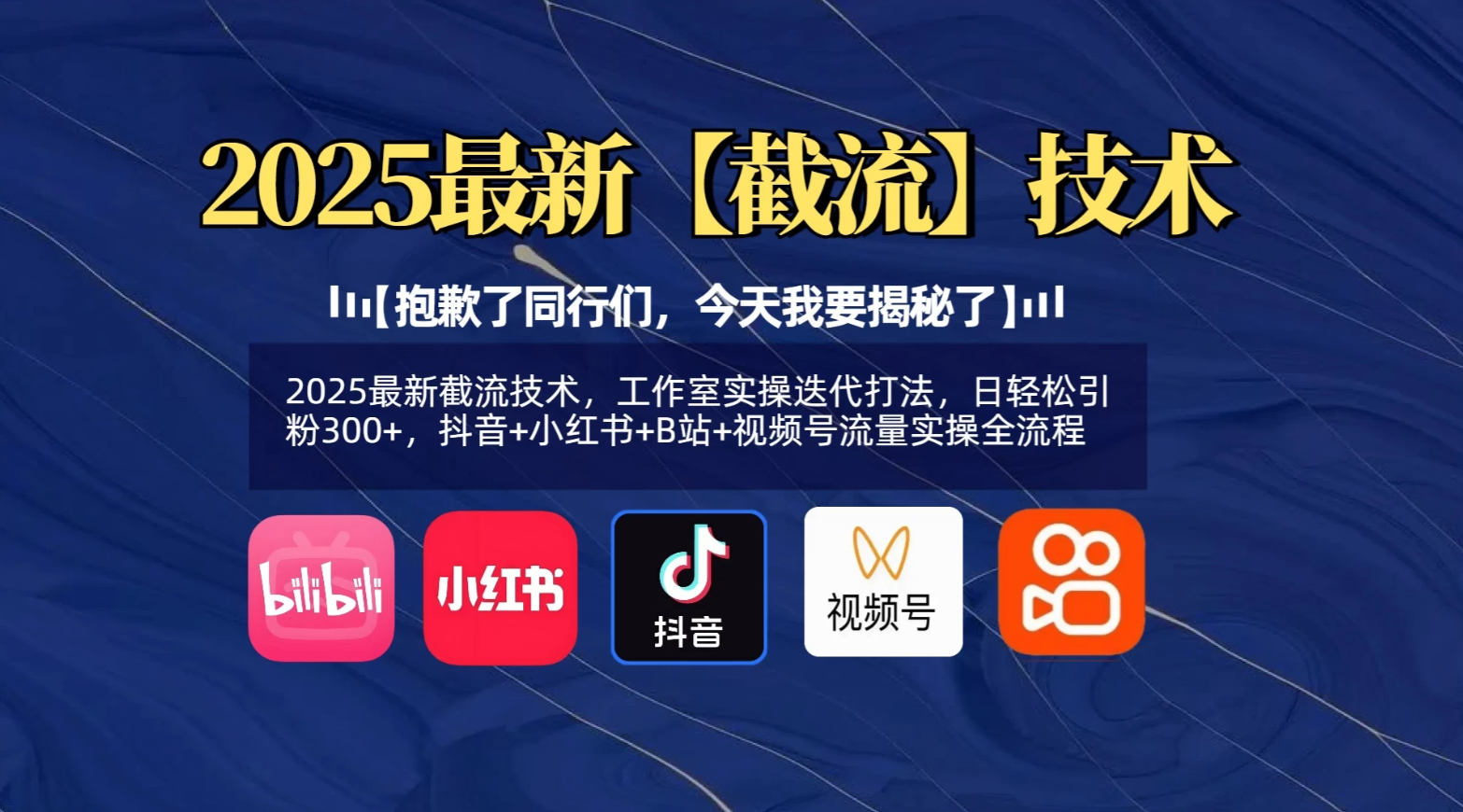 2025最新截流技术,日轻松引流300+,抖音+小红书+B站+视频号流量截流全套教程下载: