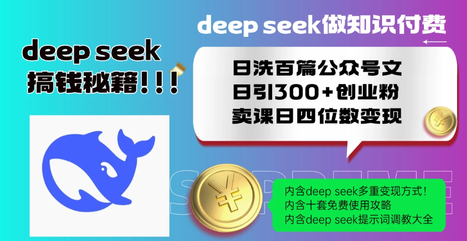 Deep seek做知识付费日引300+创业粉,卖课日入四位数,保姆级教程下载: