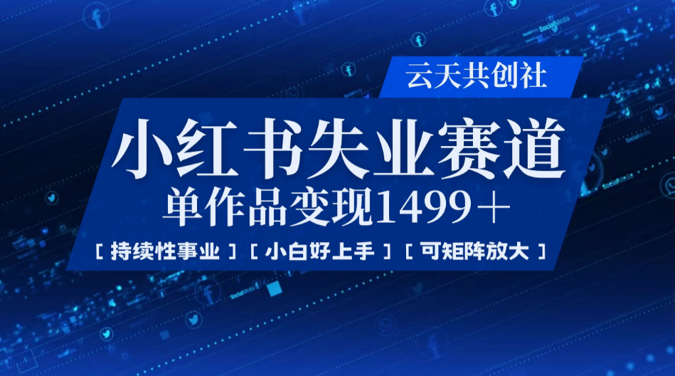 小红书失业赛道项目,人人刚需,单作品变现1499+,全套教程下载: