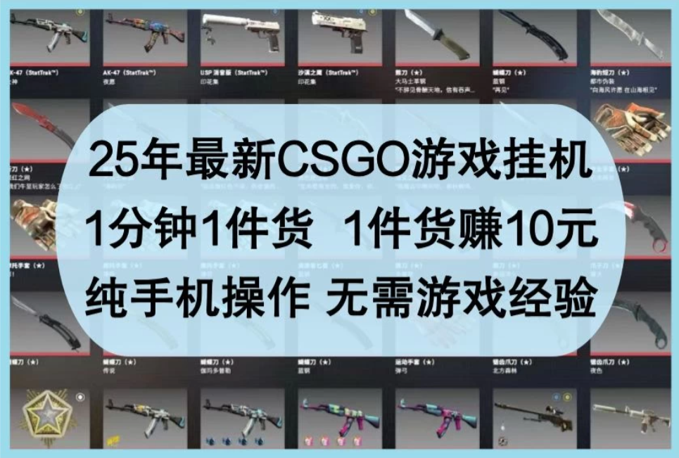 25年最新CSGO游戏挂机,1分钟1件货,1件货赚10元,纯手机操作,无需游戏经验细致拆解项目原理,所有数据支持验证,拒绝割韭菜!!!