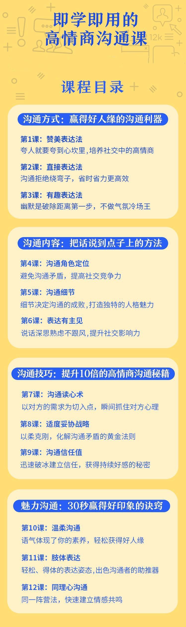 即学即用的高情商沟通课,轻松化解表达难题下载地址: 隐藏内容 本内容需权限查看 购买查看权限 普通用户: 9.9绿币VIP会员: 免费永久会员: 免费 已有100人解锁查看 声明:免责声明:本站资源均为网络平台购买所得,如有侵权,请及时联系客服删除,本站不承担任何责任!