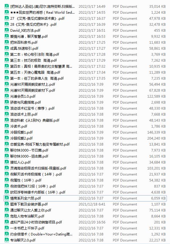 40部两性情感恋爱把妹PDF电子书珍藏合集,截图如下: