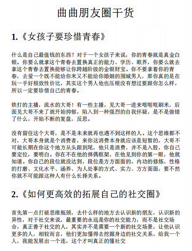 曲曲朋友圈干货近15万字下载: 下载地址: 隐藏内容 本内容需权限查看 购买查看权限 普通用户: 9.9绿币VIP会员: 免费永久会员: 免费 声明:免责声明:本站资源均为网络平台购买所得,如有侵权,请及时联系客服删除,本站不承担任何责任!