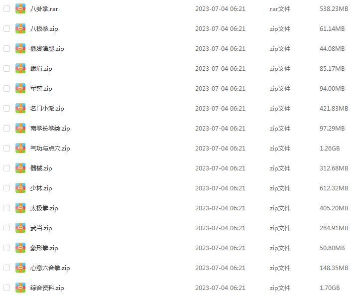 全网最全功夫武术散打器械类教程资源合集,有各类武术散打教程,各门派功夫秘籍,各大军警格斗教程,各类器械训练教程,资源截图如下: 全网最全功夫武术散打器械类教程资源合集下载: 下载地址: 隐藏内容 本内容需权限查看 购买查看权限 普通用户: 9.9绿币VIP会员: 免费永久会员: 免费 已有1000人解锁查看 声明:免责声明:本站资源均为网络平台购买所得,如有侵权,请及时联系客服删除,本站不承担任何责任!