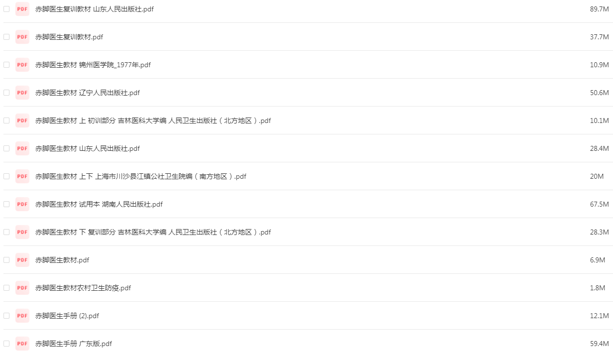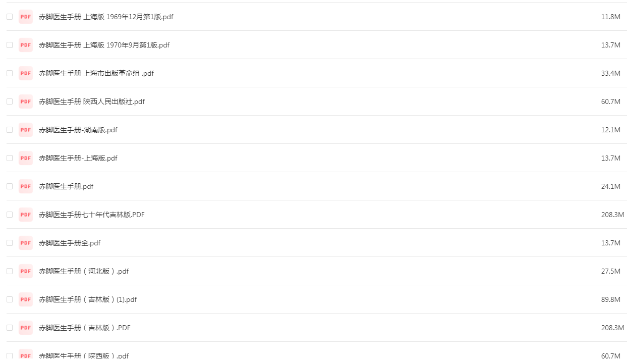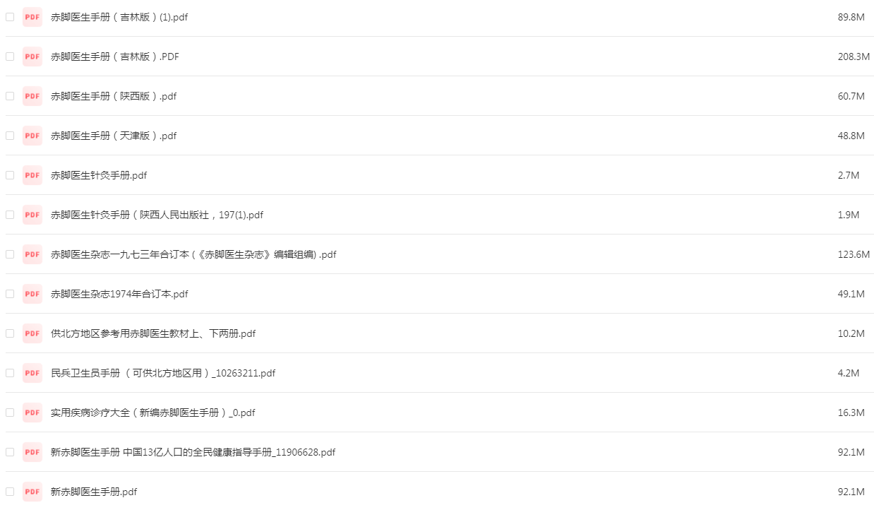 赤脚医生手册 (旧版+新版+教材)全套资源,以下仅展示部分资源截图: