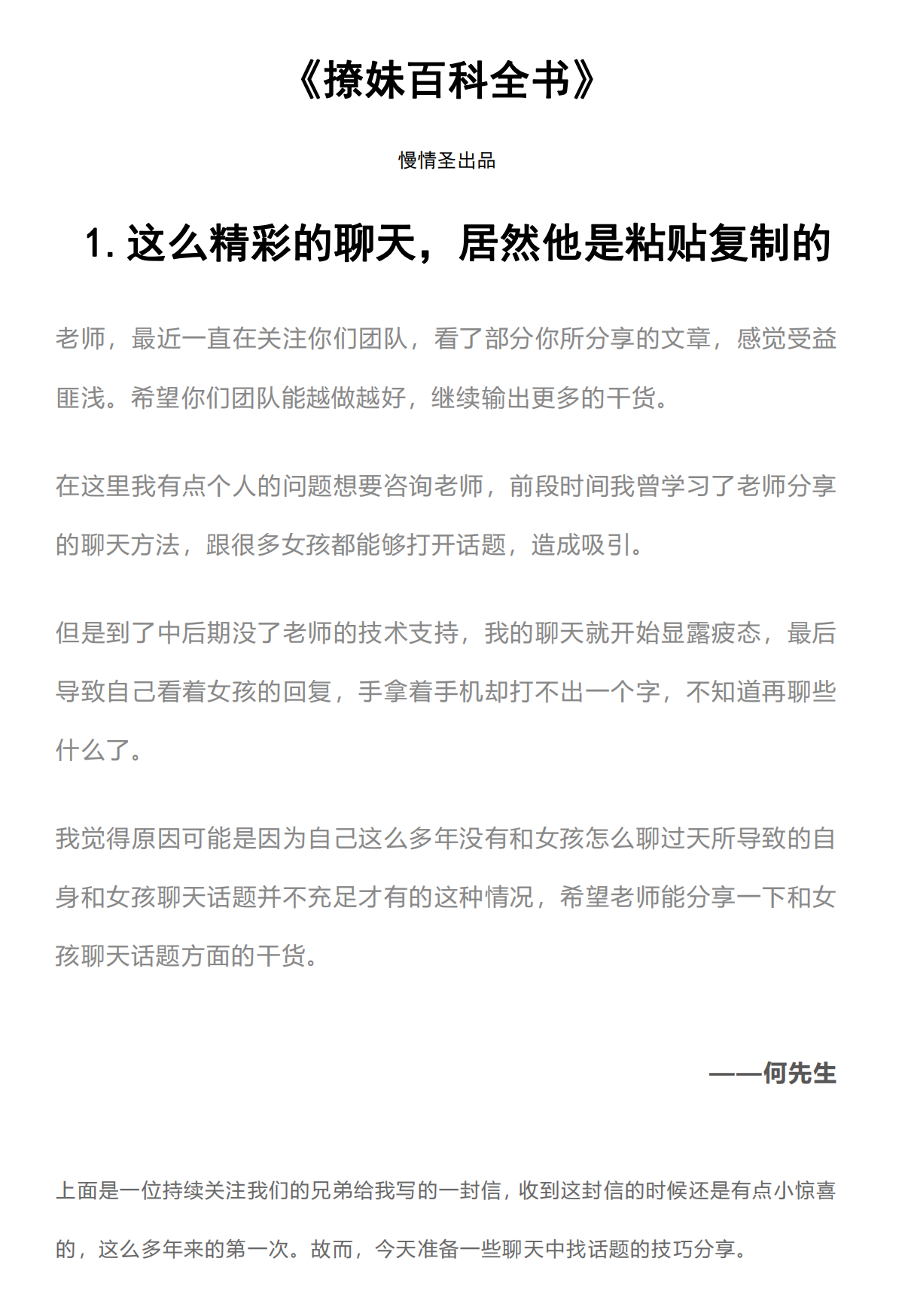 Last Updated on 2026年3月8日 by samerobot 慢情圣《撩妹百科全书》近300页实战案例: 下载地址: 隐藏内容 本内容需权限查看 购买查看权限 普通用户: 9.9元VIP会员: 免费永久会员: 免费 声明:免责声明:本站资源均为网络平台购买所得,如有侵权,请及时联系客服删除,本站不承担任何责任!