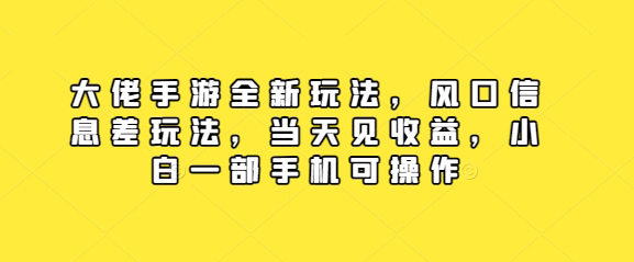 手游项目风口信息差玩法,当天见收益,小白一部手机就可操作,全套操作教程下载: