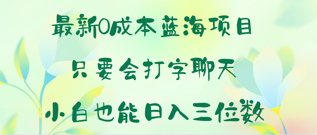 最新0成本打字聊天项目,简单操作,小白也能日入三位数,操作教程下载: