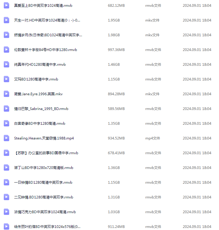 65部浪漫温馨经典爱情电影珍藏资源合集75G,本资源为会员专属,会员方能查看,点击开通会员(先注册一个账号,登陆以后再点击开通会员),以下仅展示部分资源截图: