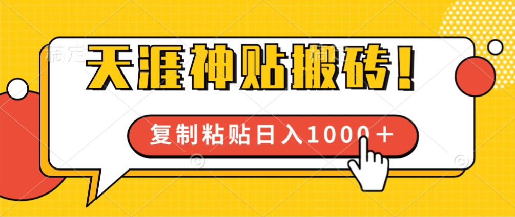 搬运天涯神贴项目,复制粘贴轻松日入1000+,全套教程下载: