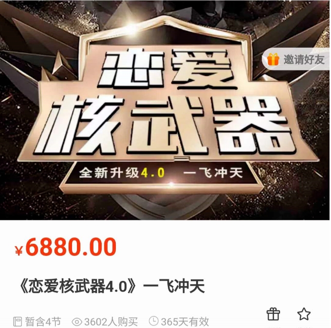 价值6880元的《恋爱核武器4.0:一飞冲天》完整版视频课程下载: