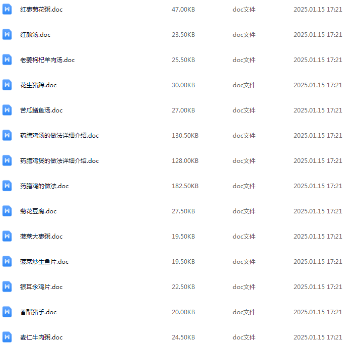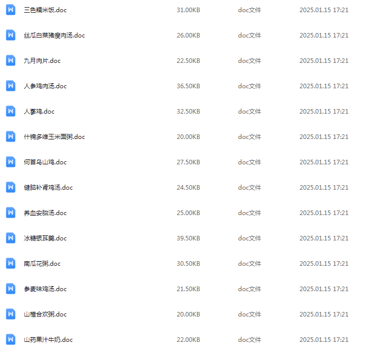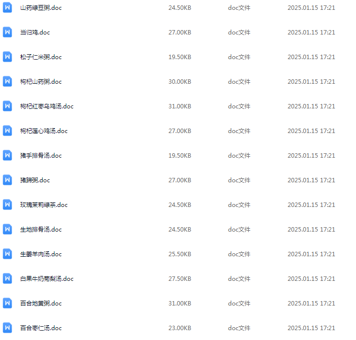 44套滋补药膳粥汤类技术配方合集,以下仅展示部分资源截图: